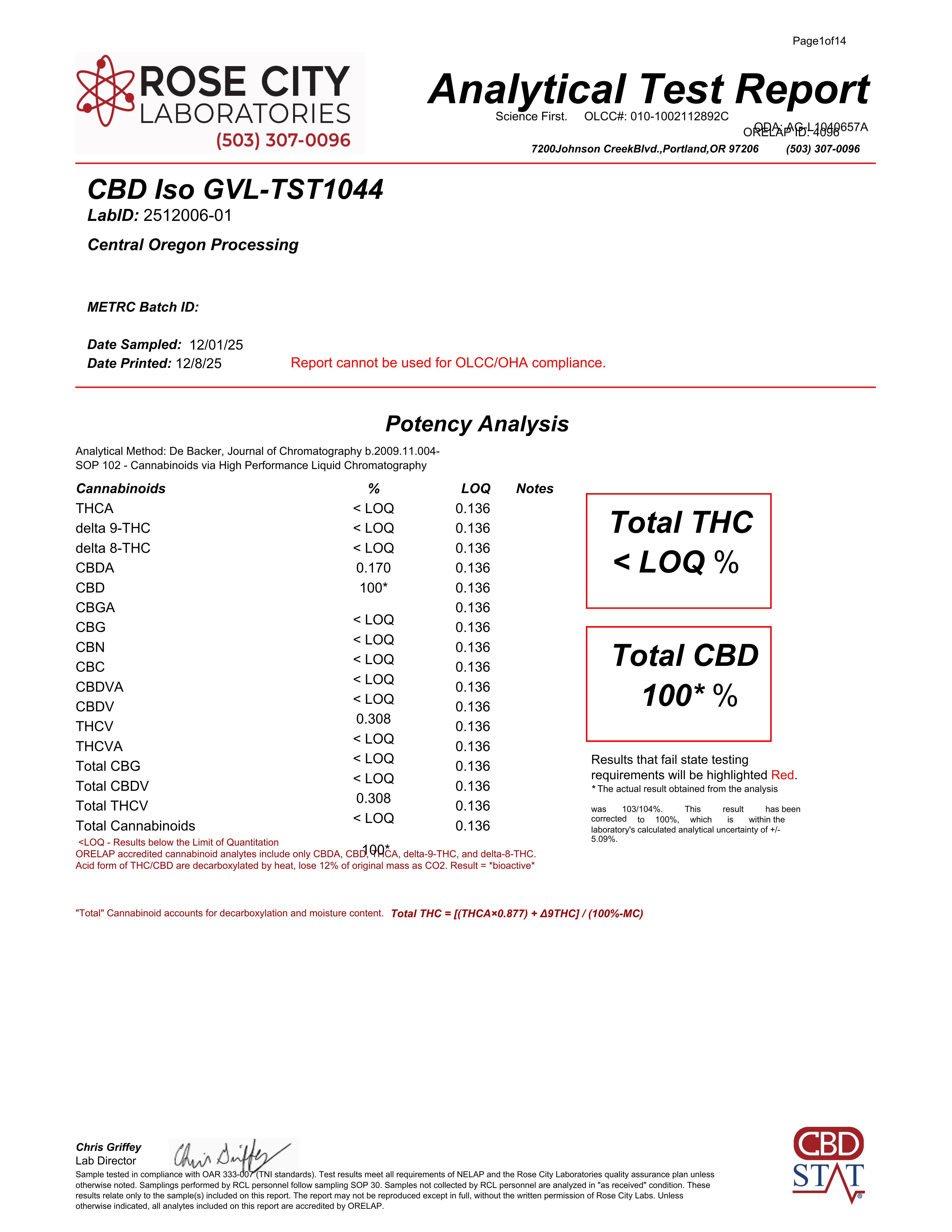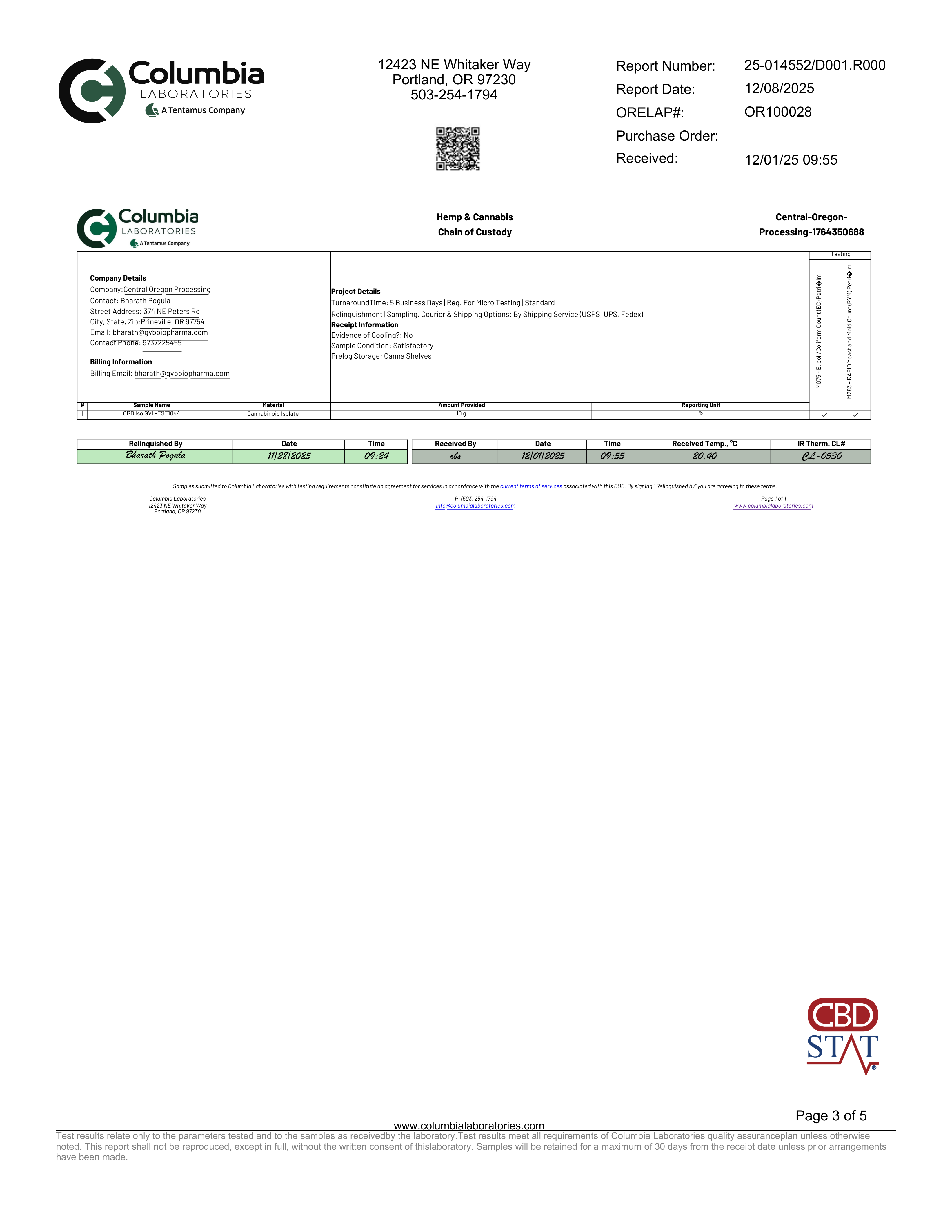 CBD Stat tests all isolate batches at an ISO-accredited laboratory for quality control purposes.