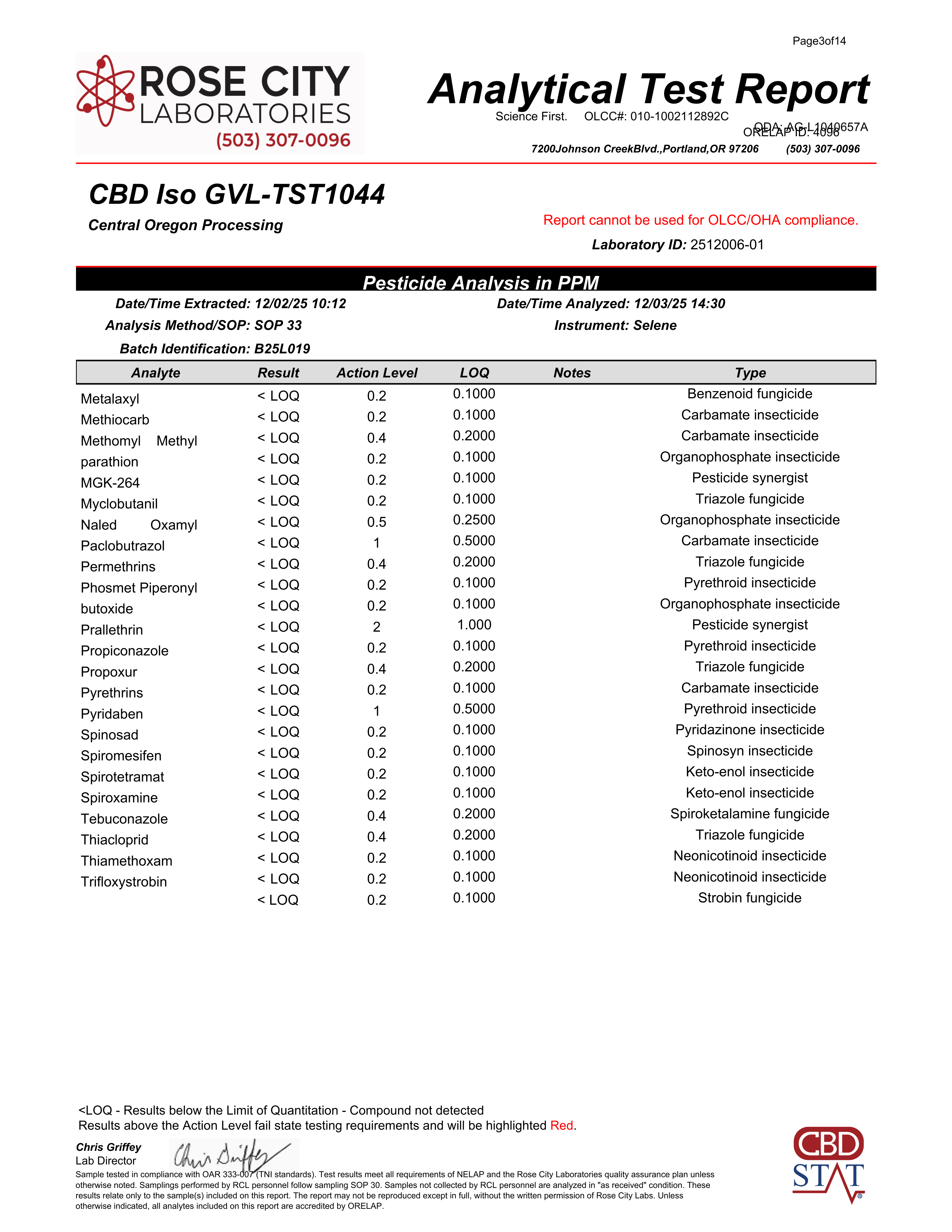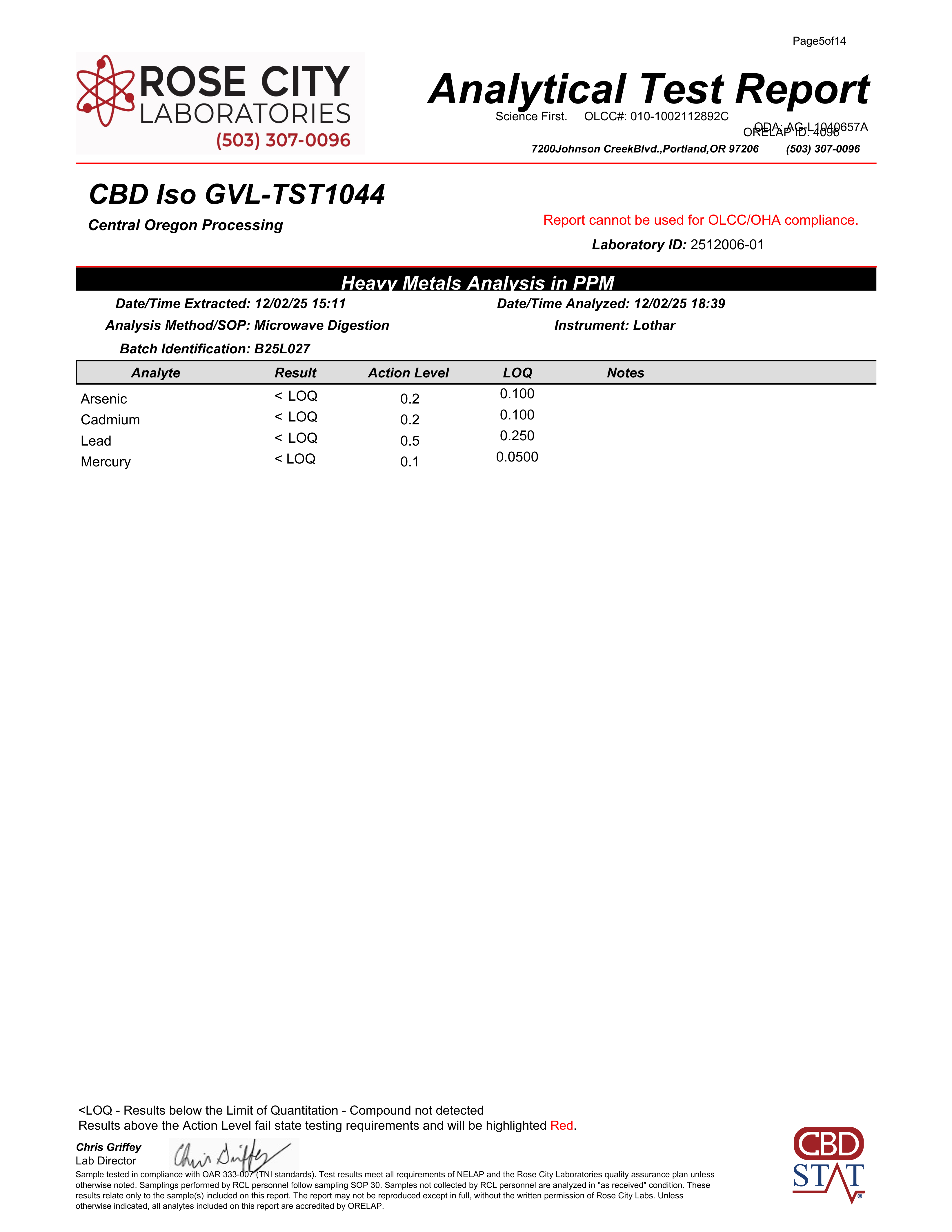 Here at CBD Stat, we take quality very seriously.  We are committed to making sure that all of our products have non-detectable (LOQ) levels of THC, heavy metals, pesticides, mycotoxins, and organic solvents.Â
